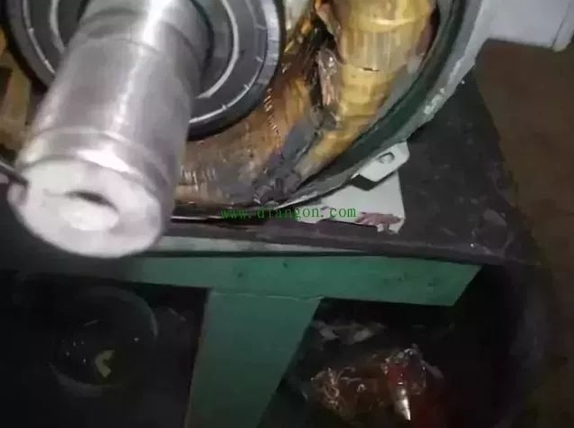 這種的燒機會出現電機內部定轉子兩端都會燒黑,燒黑的部位比較均勻(一般電機都有一個因定的運行功率,稱之為額定功率,單位為瓦(W),如果在某種情況下使電機的實際使用功率超過電機的額定功率,則稱這種現象為電機過載)。