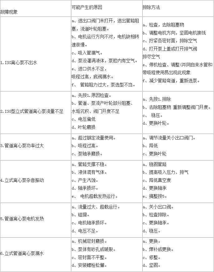)等,IS型離心泵和SG型管道泵之性能參數(shù),在一般立式管道泵的基礎(chǔ)上進(jìn)行巧妙組合設(shè)計(jì)而成,同時(shí)根據(jù)使用溫度、介質(zhì)等不同在ISG型管道離心泵的基礎(chǔ)上派生出適用立式熱水管道離心泵、不銹鋼管道泵、防爆離心泵。該系列產(chǎn)品具有噪音低、性能可靠等。