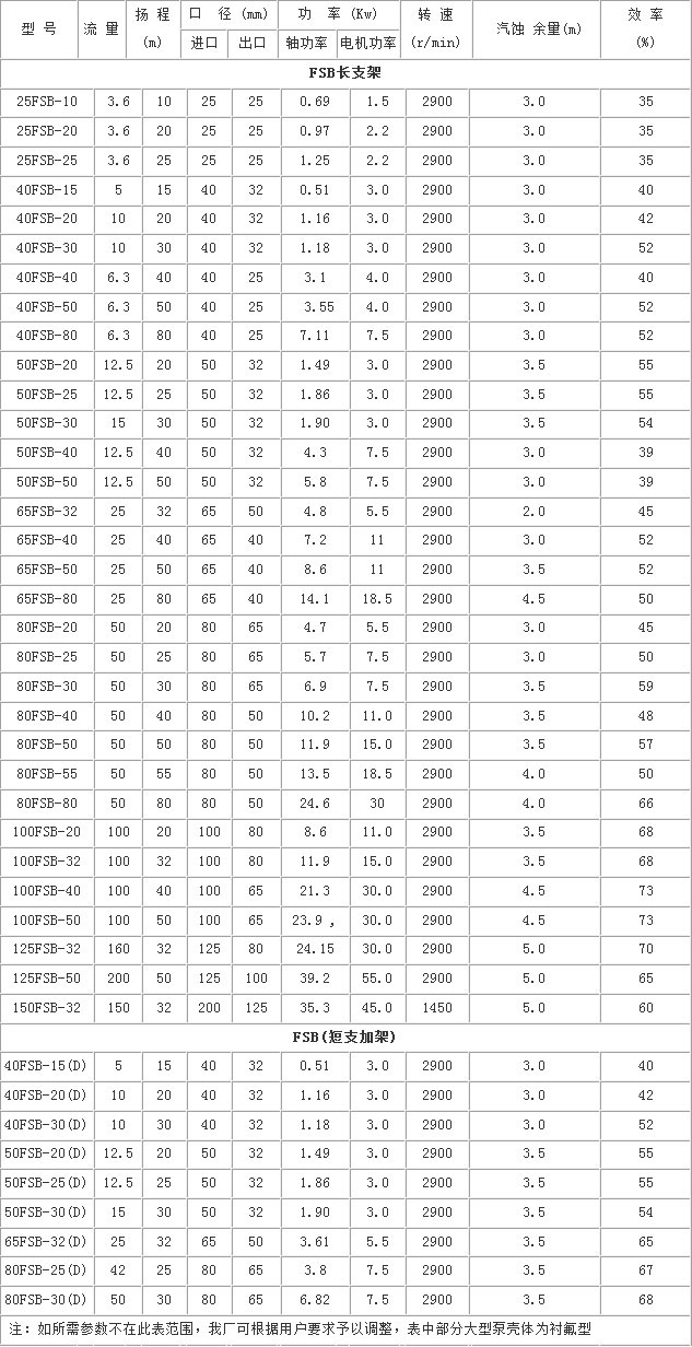 FSB氟塑料合金離心泵安裝尺寸