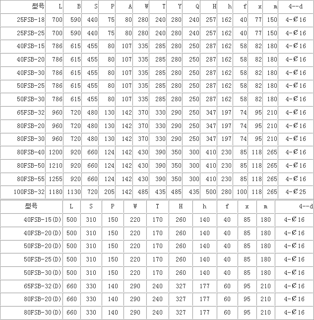 FSB氟塑料合金離心泵法蘭尺寸